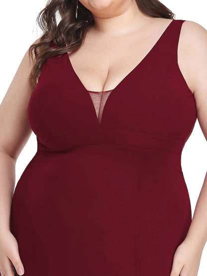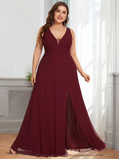 Deep V Open Back Slit Long Plus Size Bridesmaid Dress