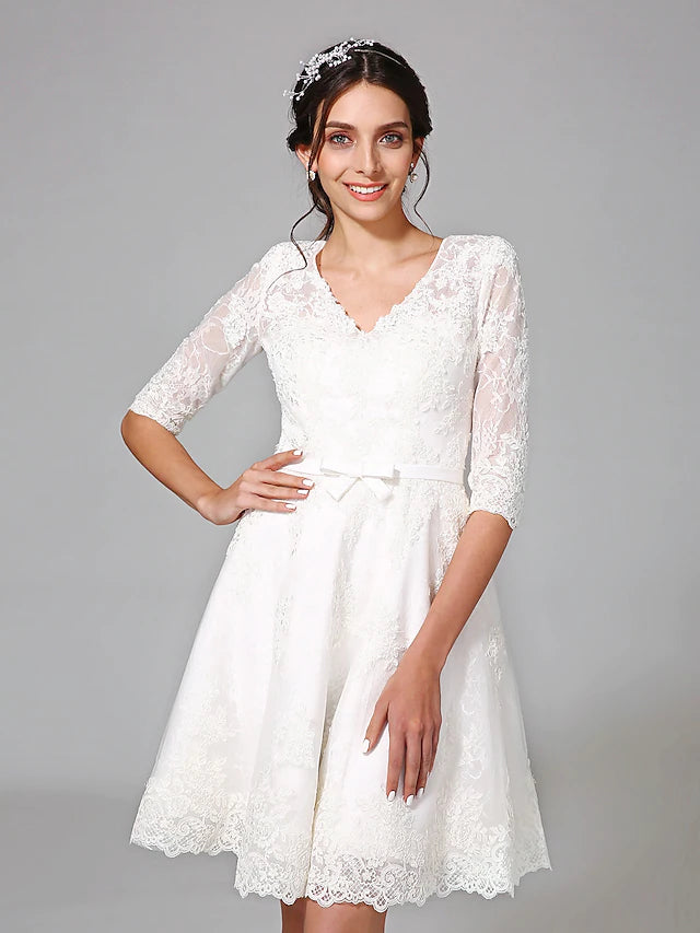 Dresses Wedding Dresses Length Length Sleeve V Neck All Over Lace With Bowknot Sash Ribbon