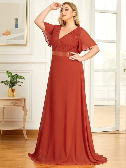 Flutter Sleeves Long Plus Size Bridesmaid Dress