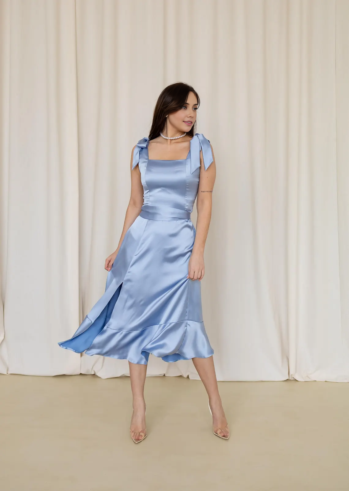 Fuchsia Satin Bridesmaids Midi Dress Wedding Guest Dress Cocktail Dresses