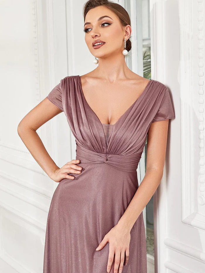 Glitzy Pleated Sweetheart A-Line Long Mother of the Bride Dress