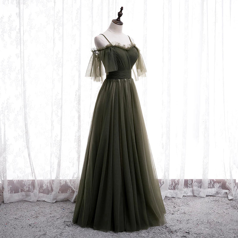 Lovely Simple Off Shoulder Straps Long Tulle Party Dresses Simple Formal Dress Prom Dress