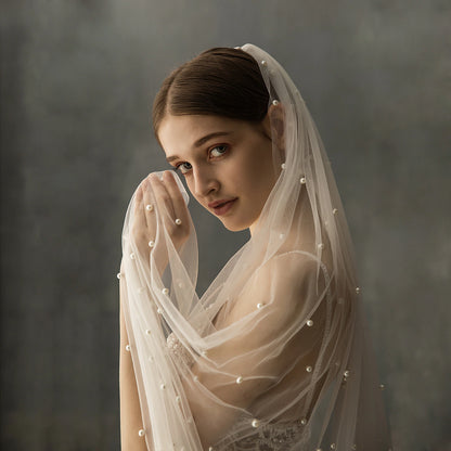 Luxurious Wedding Veil Cathedral Veils with Faux Pearl 78.74 in (200cm) Tulle