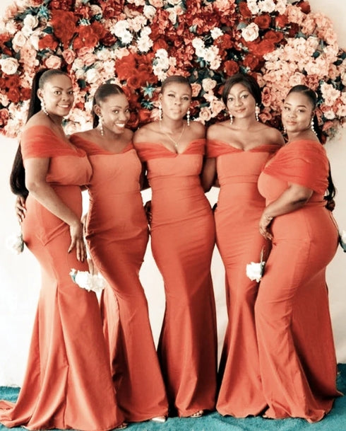 Mermaid Satin Bridesmaid Dresses Tulle Off Shoulder Sheath Wedding Guest Party Dresses