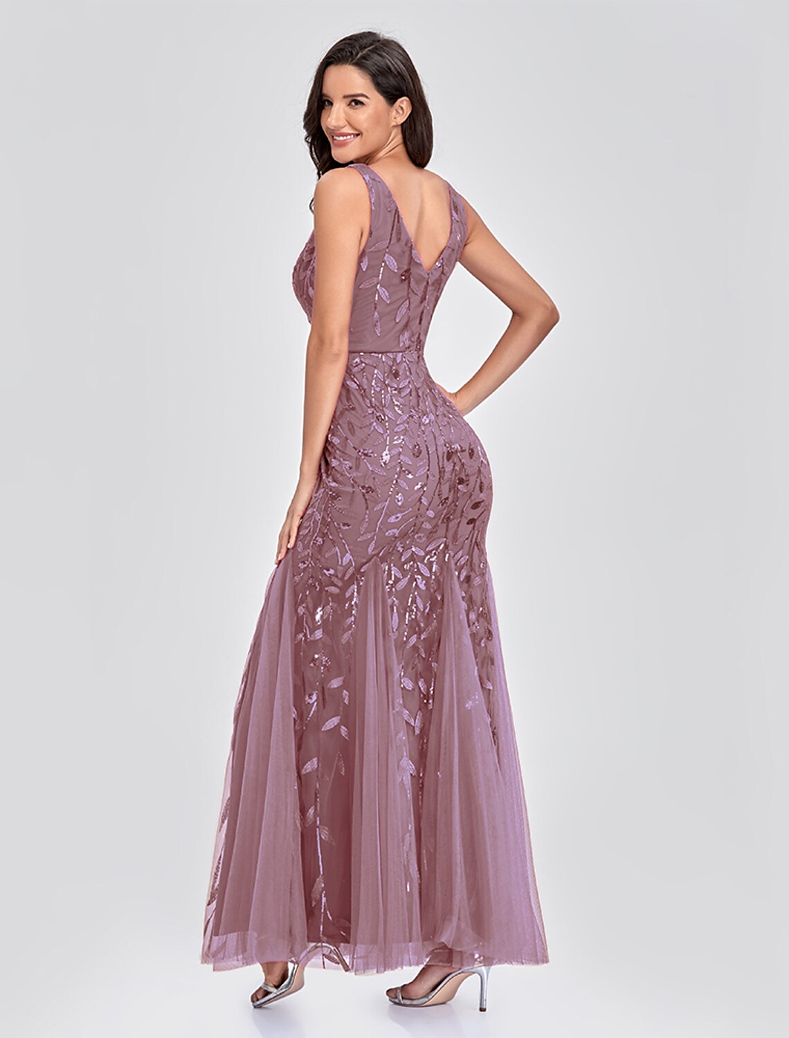 Mermaid / Trumpet Empire Elegant Party Wear Formal Evening Valentine's Day Dress V Neck V Back Sleeveless Floor Length Tulle with Embroidery