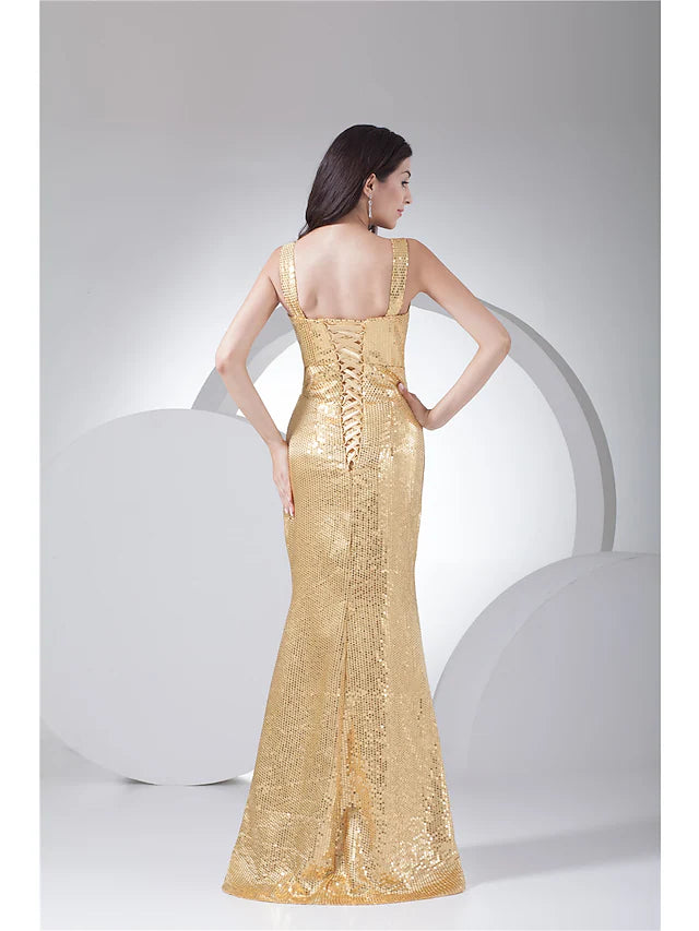 Mermaid Trumpet Prom Dresses Elegant Dress Formal Evening Floor Length Sleeveless V Neck Sequined with Sequin