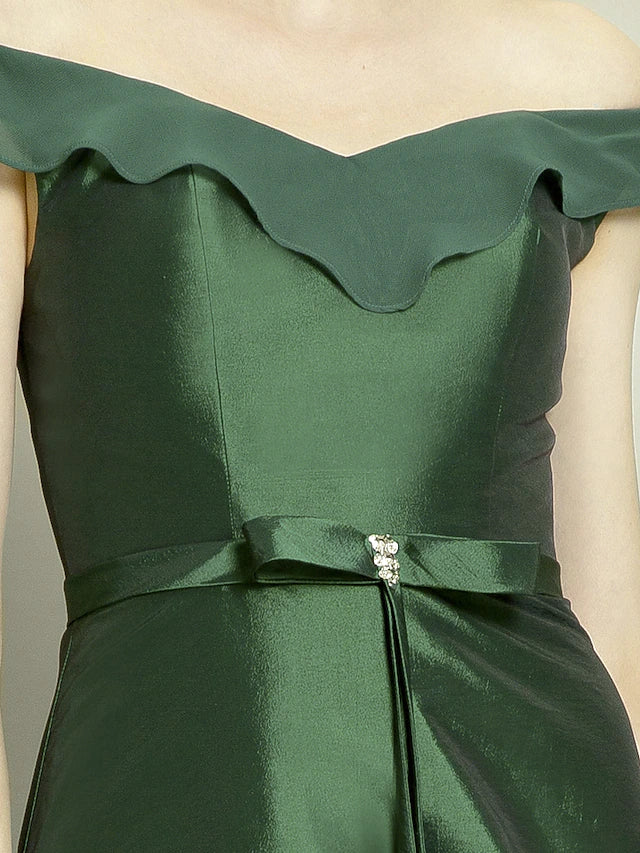 Mother of the Bride Dress Elegant High Low Off Shoulder Asymmetrical Chiffon Taffeta Short Sleeve with Pick Up Skirt Bow(s) Beading