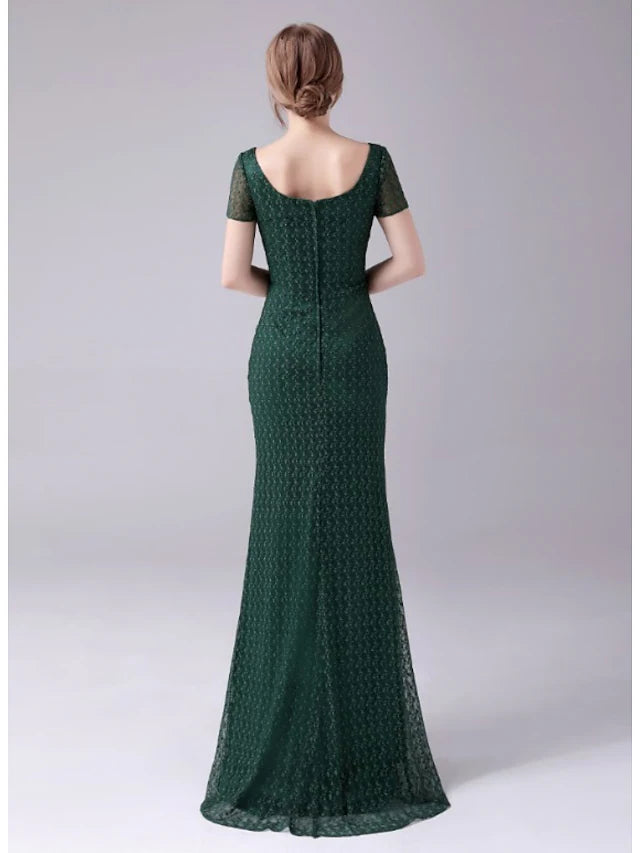 Mother of the Bride Dress Elegant Sweet Scoop Neck Floor Length Lace Short Sleeve with Lace