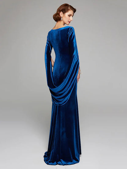 Mother of the Bride Dress Vintage Plus Size Sexy Scoop Neck Velvet Long Sleeve with Pleats