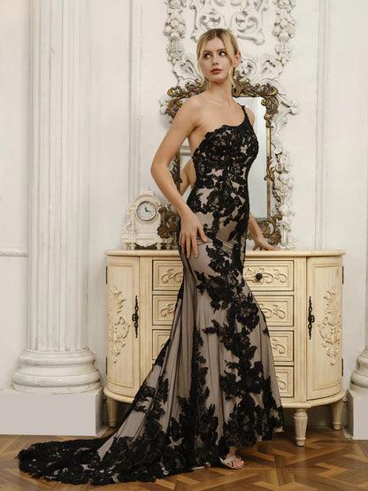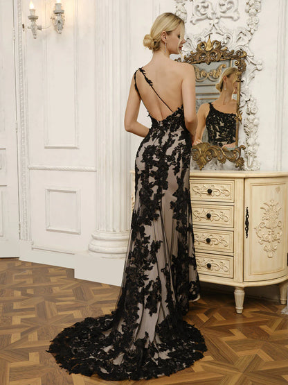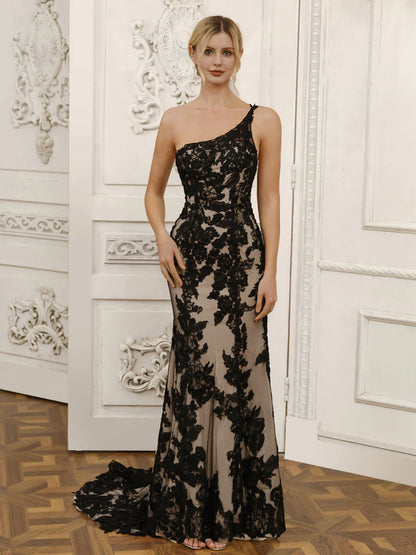 One-Shoulder Sleeveless Tulle Mermaid Wedding Dresses With Appliques