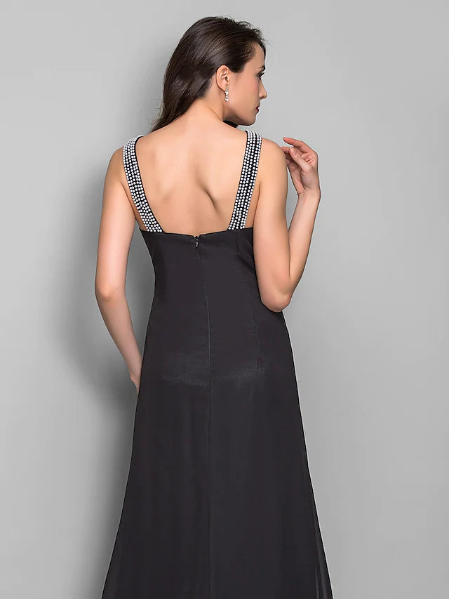 Open Back Dress Formal Evening Sleeveless Scoop Neck Chiffon with Pleats Split Front