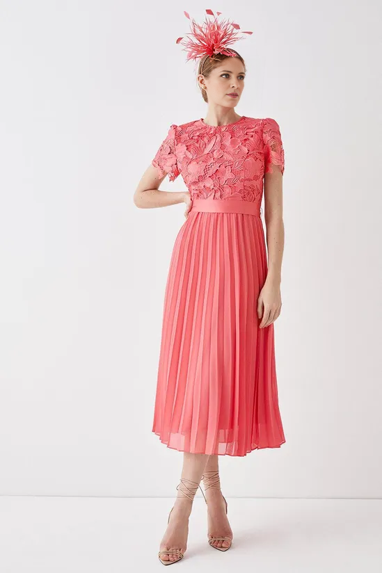 Premium Floral Satin Lace Pleat Skirt Midi Dress A-Line Mother of the Bride Dresse