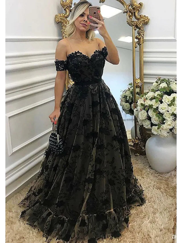 Prom Dresses Color Block Dress Formal Floor Length Sleeveless Sweetheart Wednesday Addams Family Lace Backless with Beading Appliques