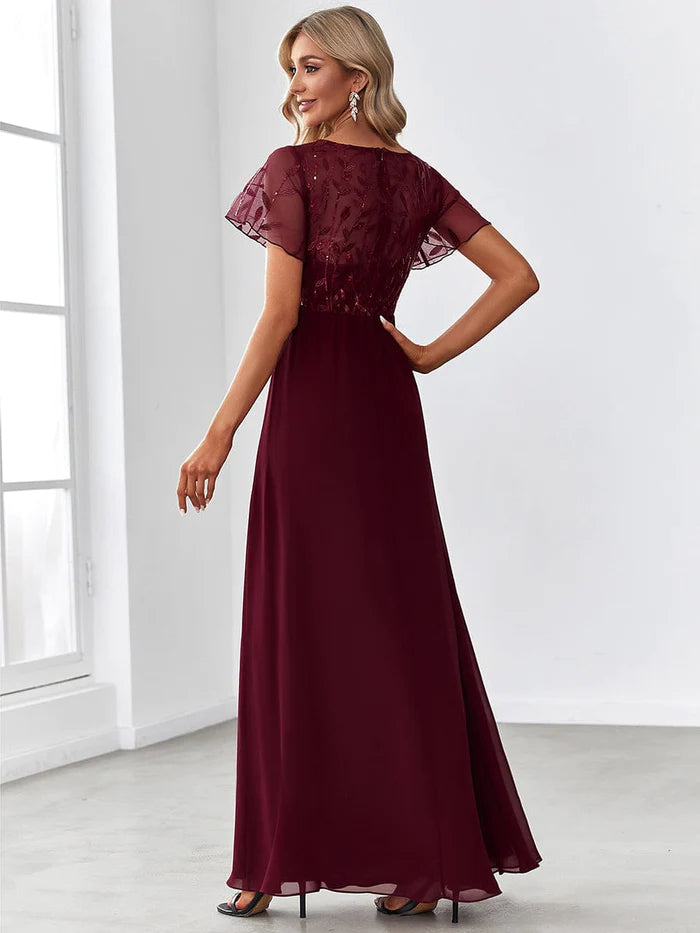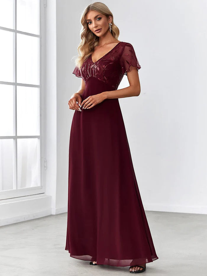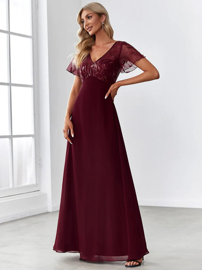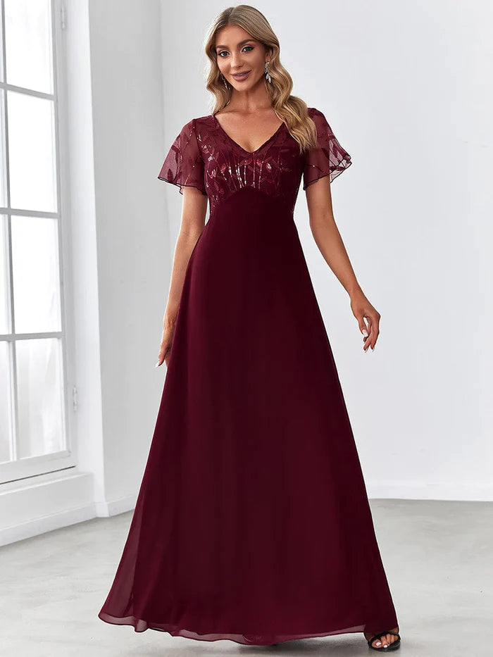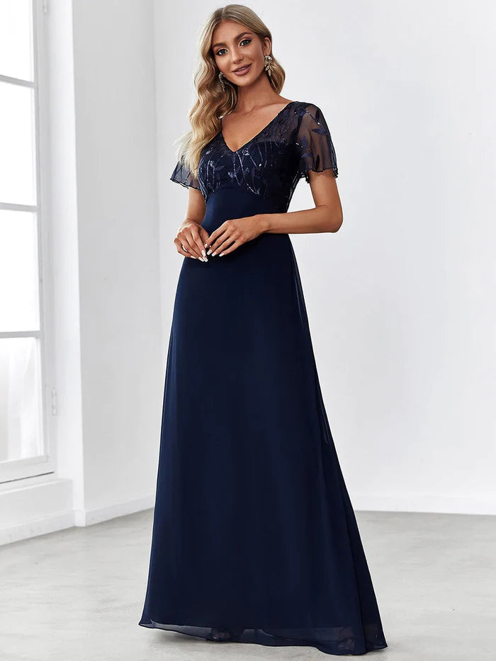 Sequin Print Evening Wedding Guest Dresses with Cap Sleeve