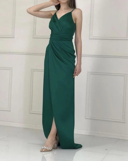 Sheath Bridesmaid Dresses Pleated V Neck Split Floor-length Evening Dresses