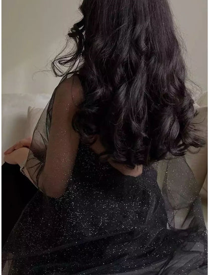Sheath / Column Evening Gown Elegant Dress Black Dress Formal Ankle Length Sleeveless Spaghetti Strap Stretch Chiffon with Sequin