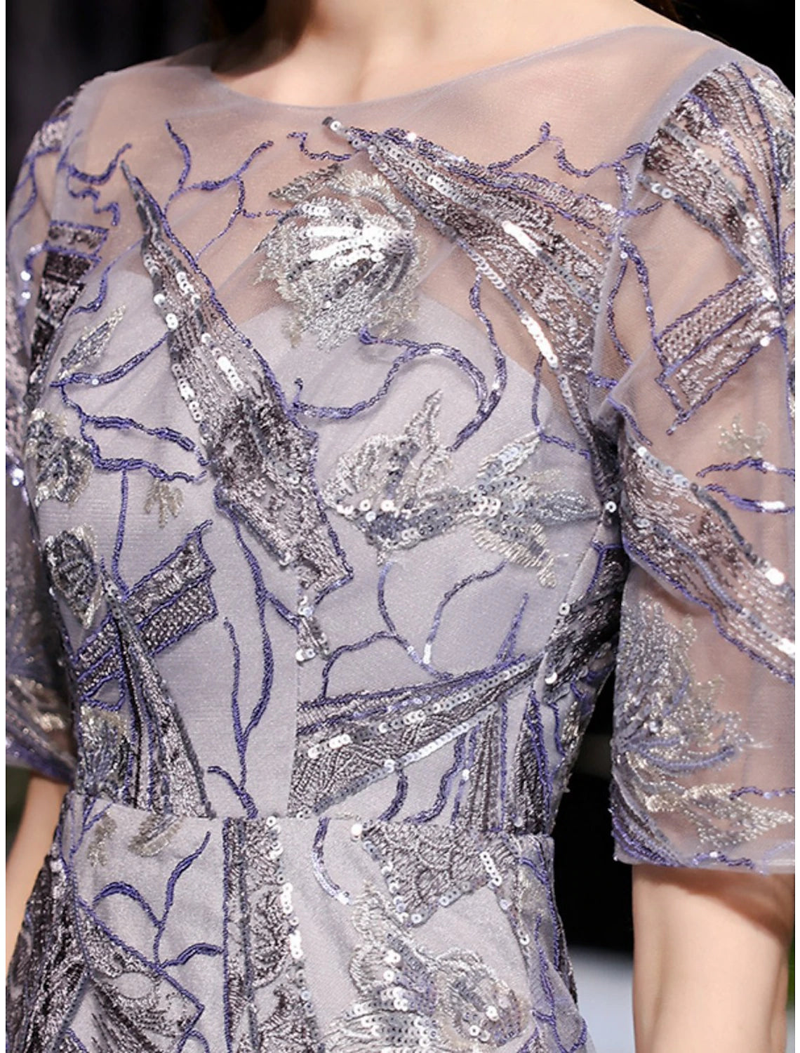 Sheath / Column Mother of the Bride Dress Wedding Guest Party Sparkle & Shine Petite Scoop Neck Tea Length Sequined Half Sleeve with Solid Color