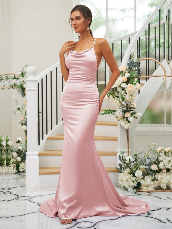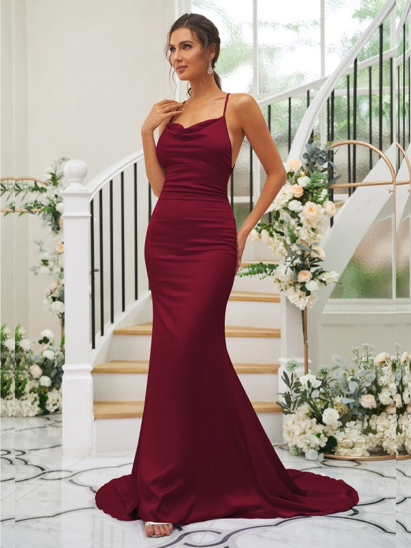 Sheath/Column Ruched Square Sleeveless Sweep/Brush Train Bridesmaid Dresses