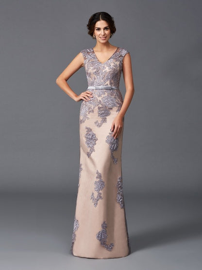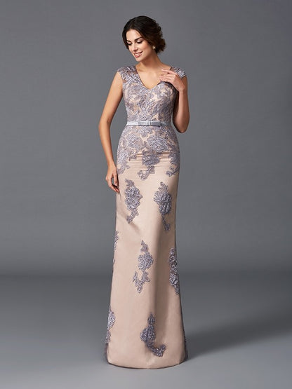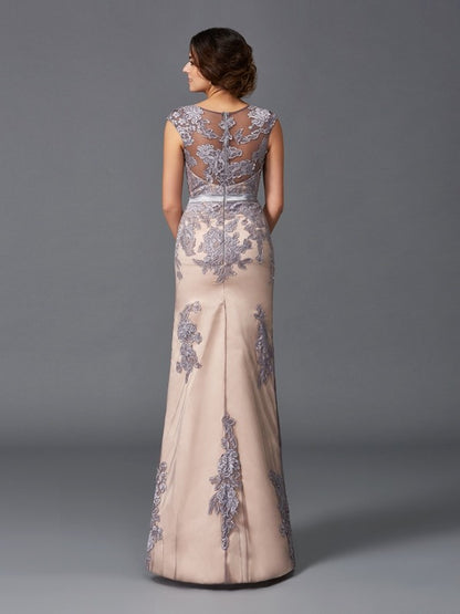 Sheath/Column Straps Applique Sleeveless Long Satin Dresses