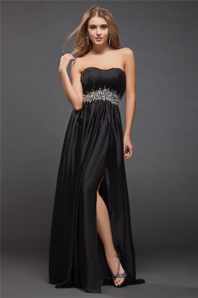 Sheath/Column Sweetheart Sleeveless Beading Long Charmeuse Bridesmaid Dresses