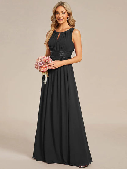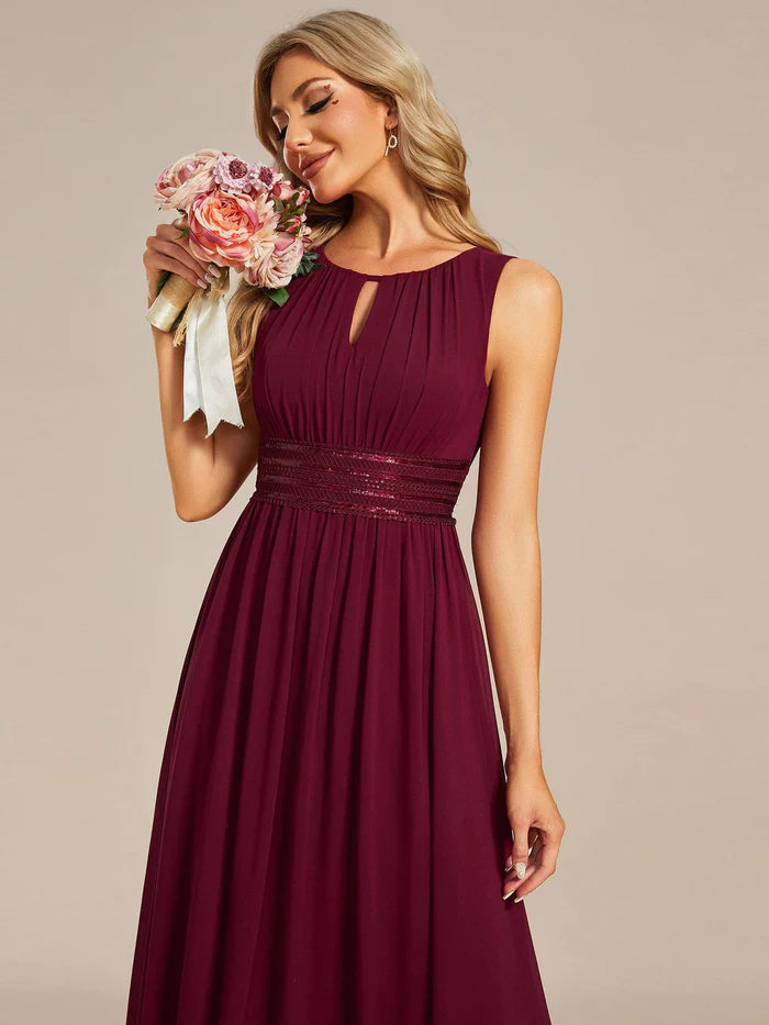 Simple Sleeveless A-line Chiffon Bridesmaid Dess with Hollow Out Detail