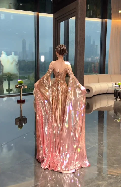 Sparkle Long Prom Dresses Metalic Sleeveless Evening Gowns