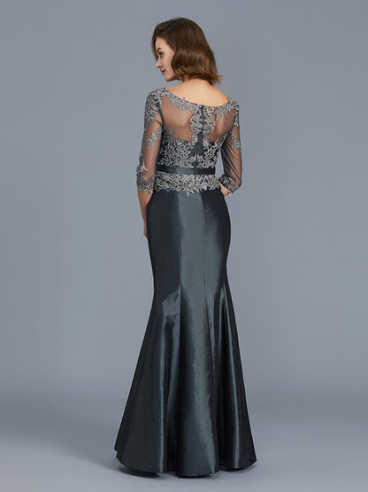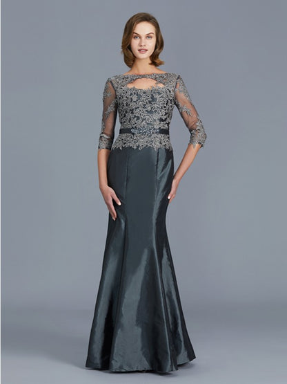 Trumpet/Mermaid Scoop 3/4 Sleeves Applique Floor-Length Taffeta Mother of the Bride Dresses