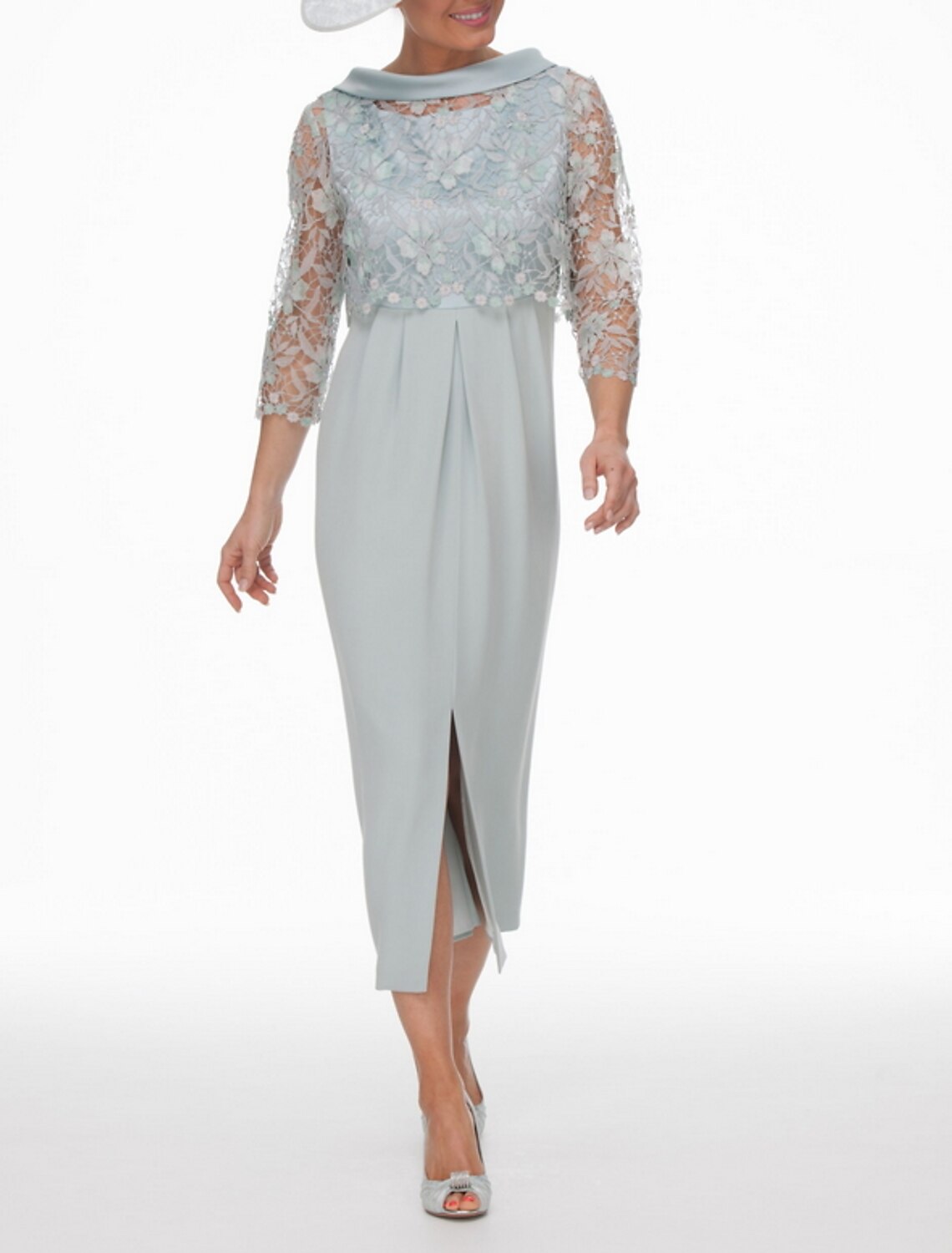 Two Piece Sheath / Column Mother of the Bride Dress Church Wrap Included Jewel Neck Ankle Length Chiffon Lace 3/4 Length Sleeve with Appliques Split Front