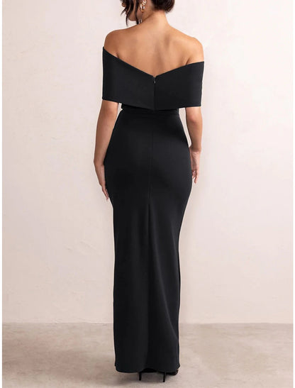 Women's Black Dress Prom Dress Party Dress Long Dress Maxi Dress Black Red Short Sleeve Plain Backless Summer Spring Fall Off Shoulder Elegant Wedding Guest Evening Party Vacation