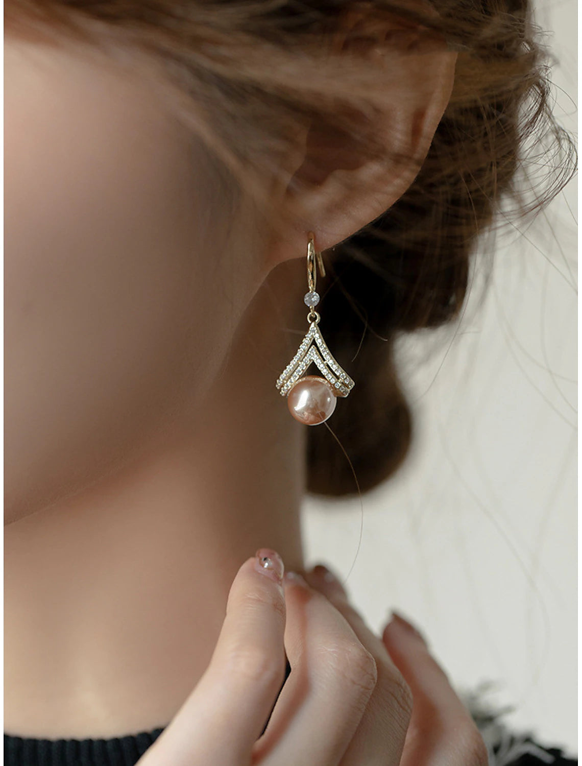 Women's Pearl Stud Earrings Fine Jewelry Rose Gold For Gift Festival 1 Pair